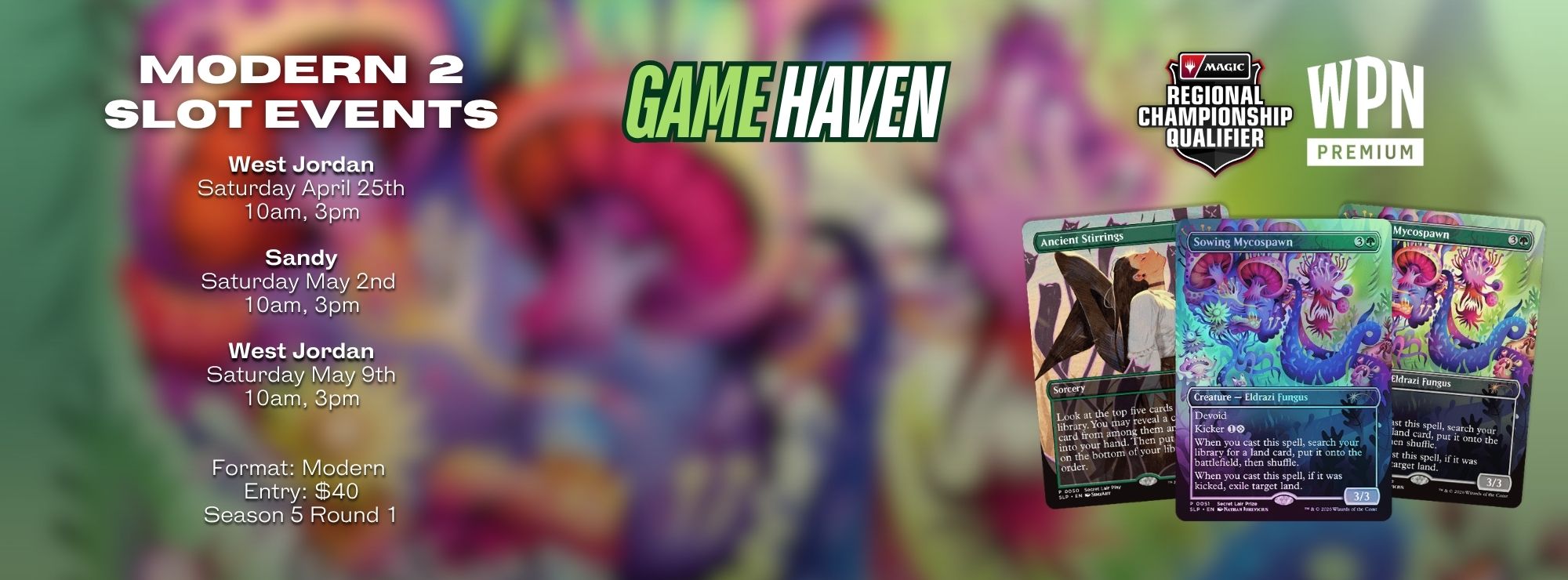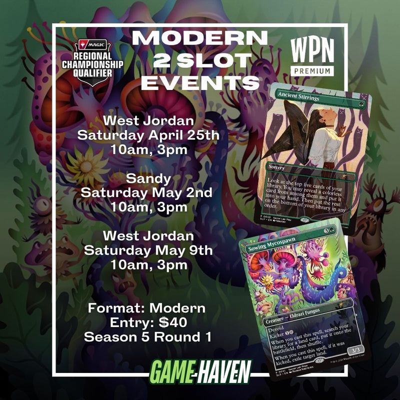 Adventurer's League, Star Wars Legion events, Yu-Gi-Oh! tournaments,