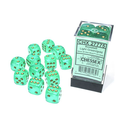 Game HavenOriginal price $11.98 - Original price $11.98Original price $11.98$11.98$11.98 - $11.98Current price $11.98| /Out of stockA cube of 12 16mm d6 Borealis light green Luminary dice with gold pips.