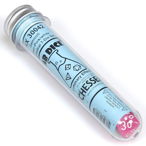 7-Set Tube Lab Dice Gemini Luminary Clear Pink with White