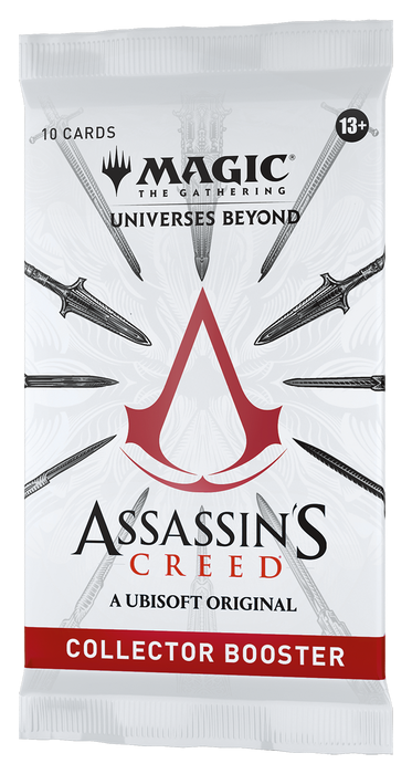 Release Date: 07/05/2024 Assassin's Creed® emerges from the shadows to join Magic: The Gathering! Your community will freerun through ancient locales with their favorite Assassins and take a leap of faith—the past is theirs to explore. With Collector Boosters, your players get direct access to the coolest cards from the set, with each booster packed with special treatments. A full display sets your players on the path to make their deck legendary! 10 Magic: The Gathering cards 2 Foil-Etched cards and 6-7 Traditional Foil cards A combination of 4-5 cards of rarity Rare or higher, 5 Uncommon cards, and 0-1 Land cards Serialized Historic Figure in <1% of boosters