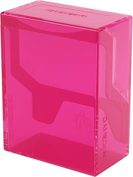 The Bastion 50+ is a very compact and rock-solid deck box to safely protect up to 45doublesleeved cards in Thick Inner Sleeves. It is ideal for decks with 55+ double-sleeved cards instandard inner sleeves and also holds Mini Snap and Slide Card Cases as well as Cube Pockets. Dueto translucent materials and smart positioning of the closing flaps, the top card is fully visiblefrom the outside without opening the box. The innovative secure click-lock mechanism protects yourdeck while still allowing easy access. The Bastion consists of 2 symmetrical parts that easilyconvert into a card pile and discard pile holder. It is perfect for a huge variety of trading cardgames. Thanks to its modular design, the Bastion fits perfectly into other Gamegenicproducts. It also comes with a write-on sticker for personalization. The Bastion is available in 10different colors, including an exclusive mix & matched black/clear version.
