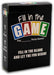 Fill in the Game is the fill in the blank party game! Challenge other players to act out a scene or perform stunts using the prompt found on the Challenge Card. Then you fill in the blank to add a twist! They get points if they succeed, but if they fail you draw a Game Changer which can be good for you, bad for them, or affect the whole table! Fill in the Game can be family-friendly or not, depending on your group, and will be different every time you play! Fill in the Game contents: 42 Challenge Cards: Each card contains 2 Challenges with a blank. 18 Game Changers: Consequences for failing, refusing, or giving up early. 5 Stunt Cards: They might be used based on their letter, number, color, or for stunts like throwing them. 2 double-sided Instructions cards. For 3+ Players!
