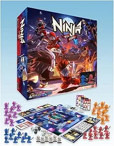 Ninja All Stars allows for 2 to 4 players to take control of a team of ninja (this may be a pre-rolled team or a team purchased with points) and battle over objectives. Each Ninja Clan is drawn from a different element (6 in total), with each element providing different bonuses in-game. As well, the game's dice mechanic is based on the element system, using a rock-paper-scissors type of dice elimination to determine the outcome of various aspects such as combat, searching, and special abilities. It is important to note that combat is not a simple "I rolled more swords than your shields"; the elimination of dice will give the winner a choice of different combat results based on the remaining dice. The interesting point here is, ninja don't die in this game-rather,they are knocked out and placed in their team's dojo, where they rest and recover and may eventually be brought back onto the board. The rules allow for one-off scenario games as well as league play with guidelines on ninja advancement, meaning that players can develop their ninja over many games.