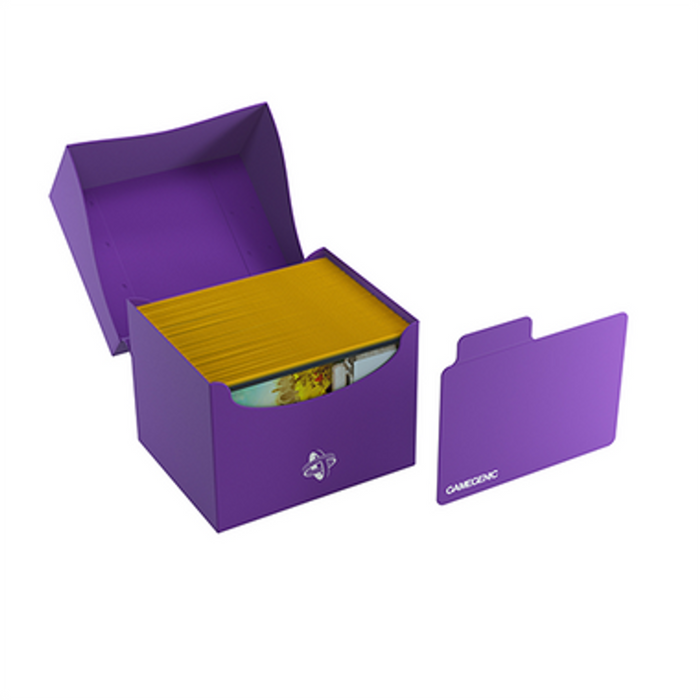 The casual and smart solution to organize your deck. – TOP and EXCLUSIVE FEATURE: Made to fit 100 double-sleeved cards in particularly thick Inner Sleeves*. A super-sized Sideholder 80+ in an extra-large version that holds 100 regular double-sleeved cards and has extra space for additional tokens, or it perfectly fits a Commander Deck in thicker Inner Sleeves. The Side Holder 100+ XL is a casual sideloading deck box to safely protect your cards. Its self-locking flap closure can be opened up to 180° thanks to the use of the innovative COBRA NECK technology on the back. A handy write-on strip allows you to individual labeling your deck box. Moreover, the included Flex Card Divider provides an easy organization of your cards. FEATURES Designed to hold up to 100 double-sleeved cards in extra thick Inner Sleeves* Sideloading: cards are stored horizontally Durable deck box with self-locking lid + write-on strip Cobra Neck technology. Flap closure can be opened up to 180° for easy access to the deck Includes Flex Card Divider to separate your decks Strong welding points Acid-free, no PVC *Optimized for particularly thick Inner Sleeves. Gamegenic sleeves recommended. Sleeves from other brands may affect capacity/compatibility **No cards, sleeves, or accessories are included